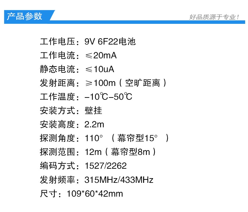 最遠(yuǎn)探測(cè)距離 12 米;探測(cè)角度水平 110°,垂直15°