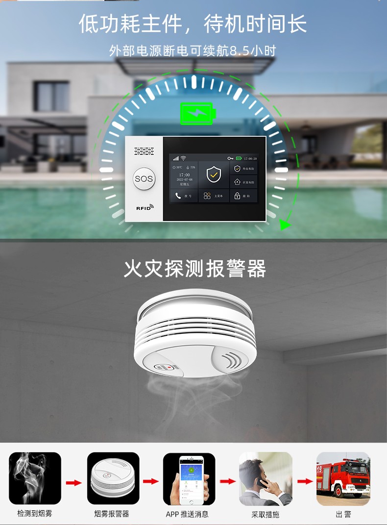 采用嵌入式操作系統(tǒng),ARM9 CPU高性能運行支持WIFI/GSM/4G/GPRS多種通信服務(wù)自帶語音提示功能,支持10個常用國家語言支持接入涂鴉云,Alexa智能語音控制,APP推送自帶高分貝警號,可選配太陽能戶外聲光警號內(nèi)置門鈴功能,緊急求助功能