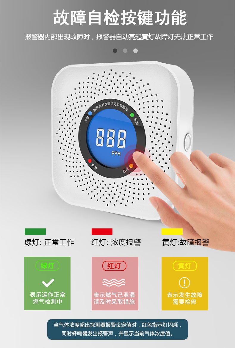 固定式一氧化碳濃度探測器固定安裝在廚房,或者是靠近烤火的地方以及工廠車間或倉庫區(qū)域,長時間不間斷檢測一氧化碳?xì)怏w濃度,發(fā)現(xiàn)超標(biāo),及時預(yù)警,也能在手機上收到預(yù)警信息。