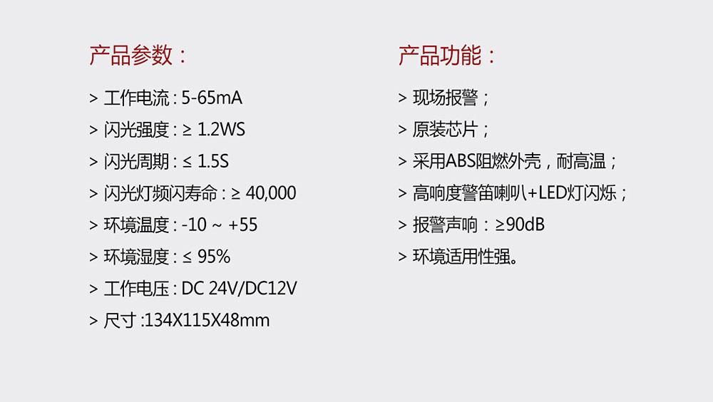 報(bào)警聲響:≥90dB