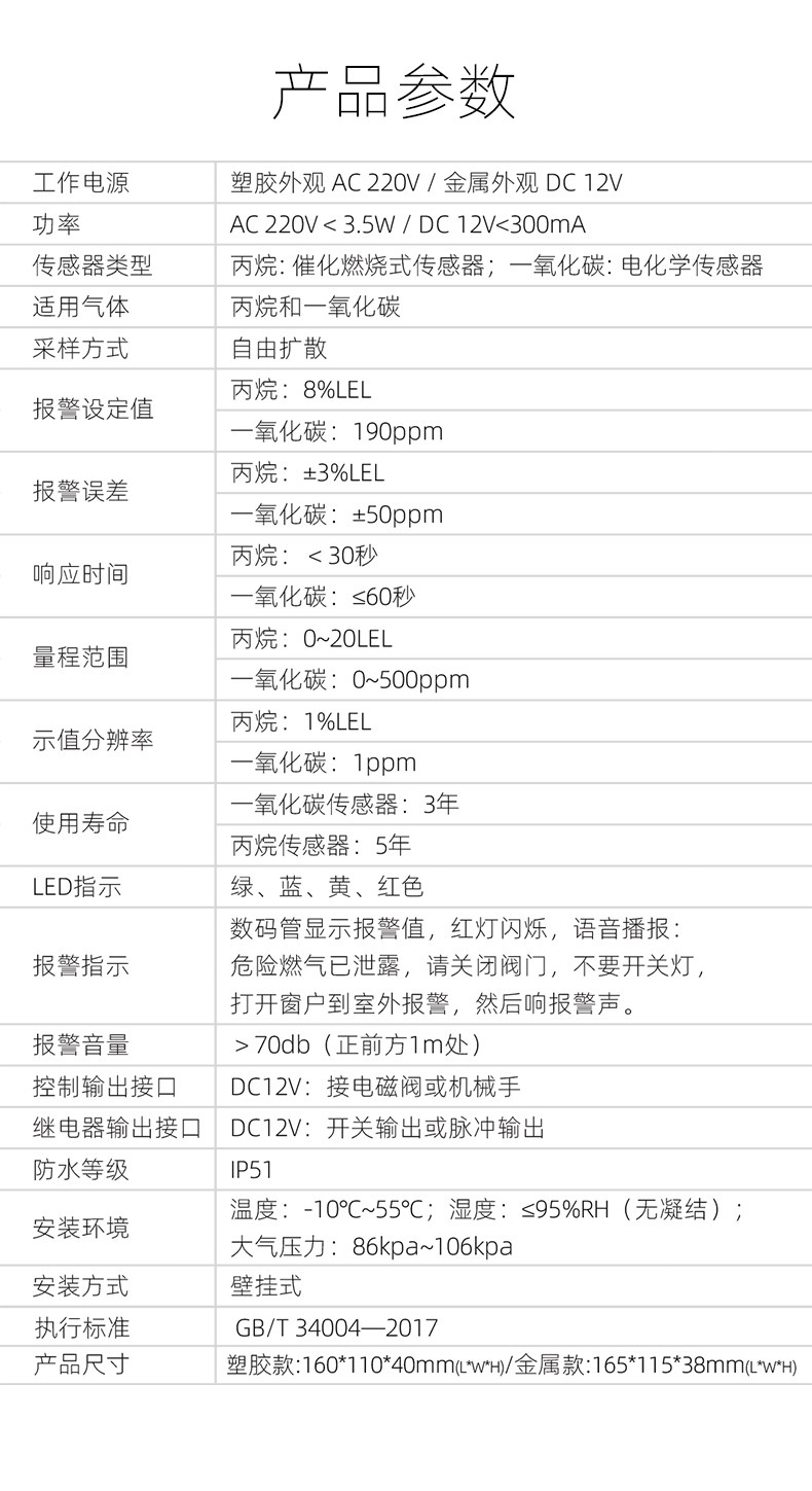 家用和小型餐飲廚房燃?xì)鈭?bào)警器 (型號BYBXYD-PA-224B)
