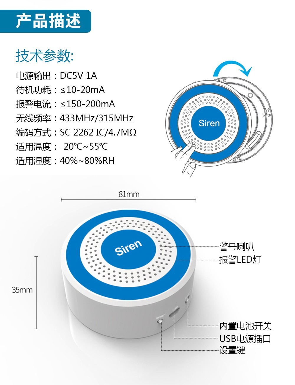報(bào)警聲響:≥90dB