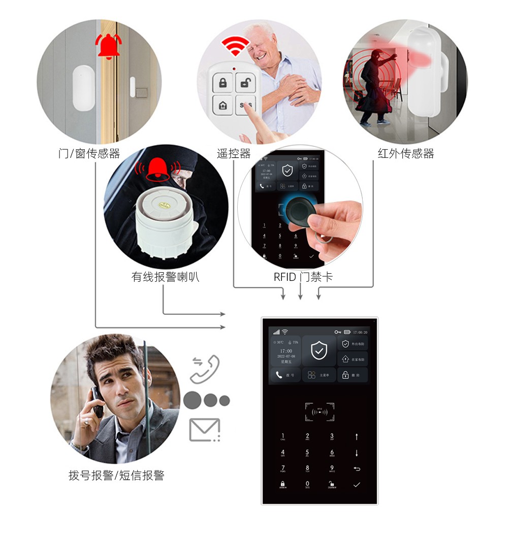 內(nèi)置無線發(fā)射功能可配置無線警號(hào)和控制智能家電;