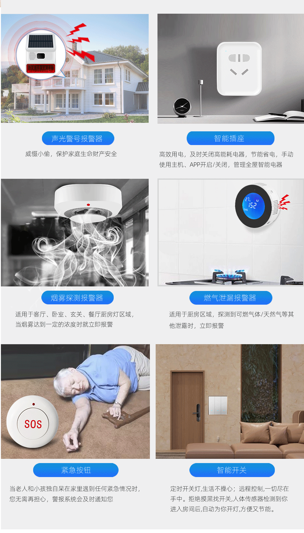 無線傳感器低電壓報(bào)警提醒;布防時(shí)門窗未關(guān)提示;