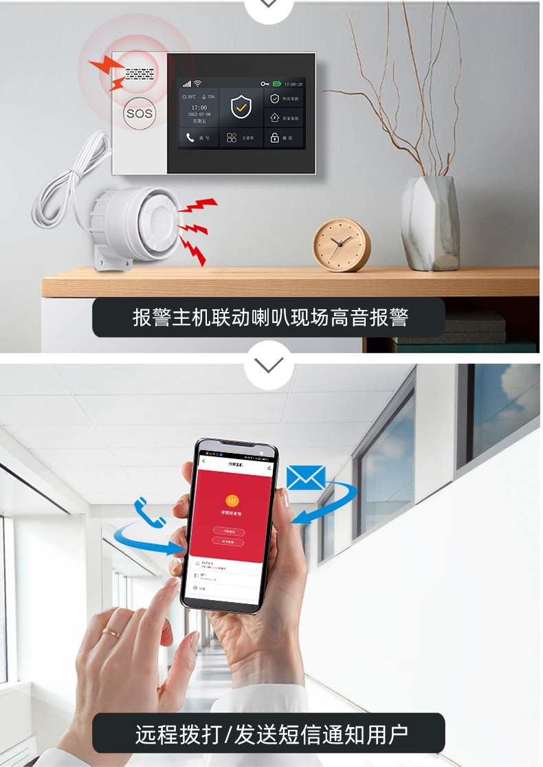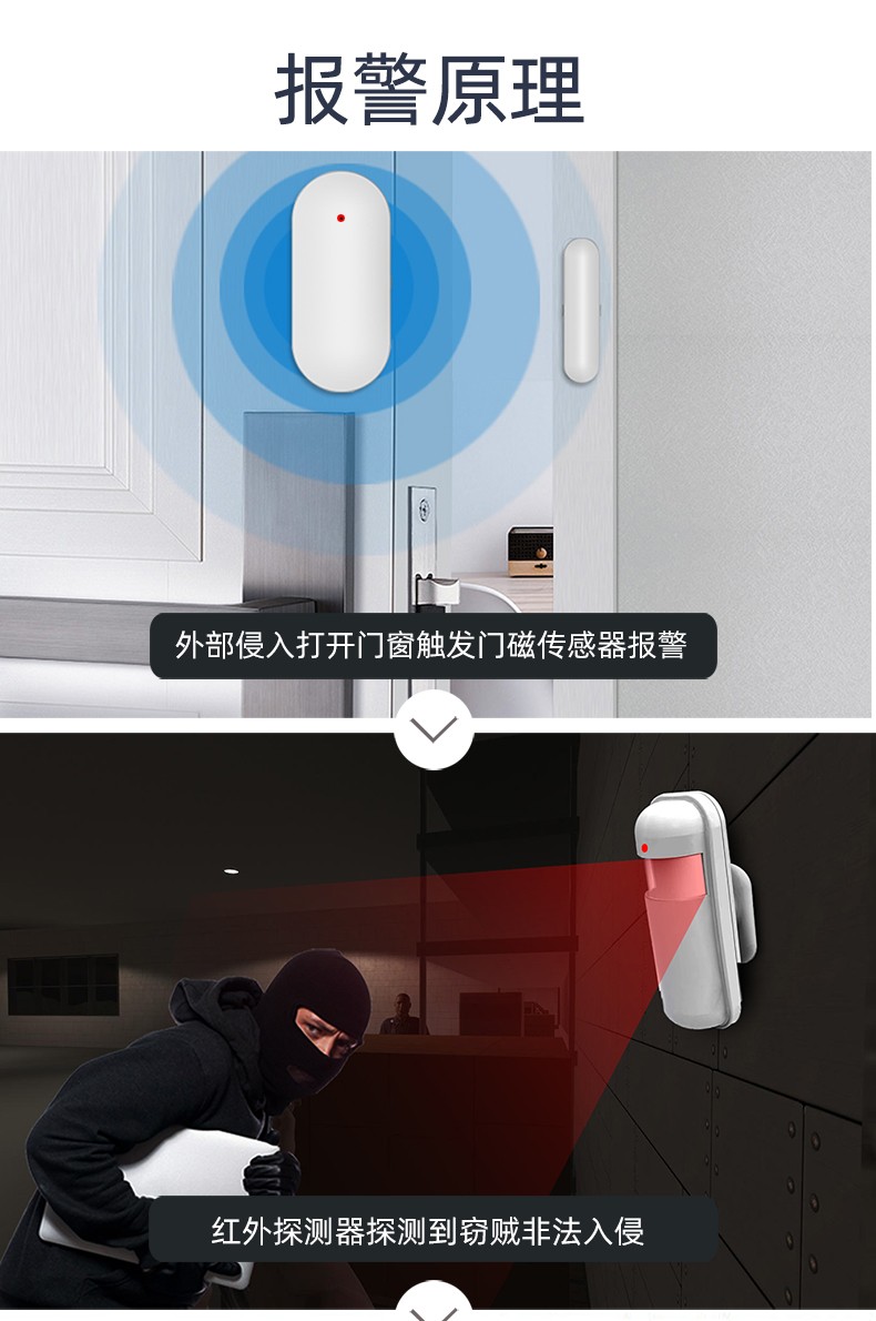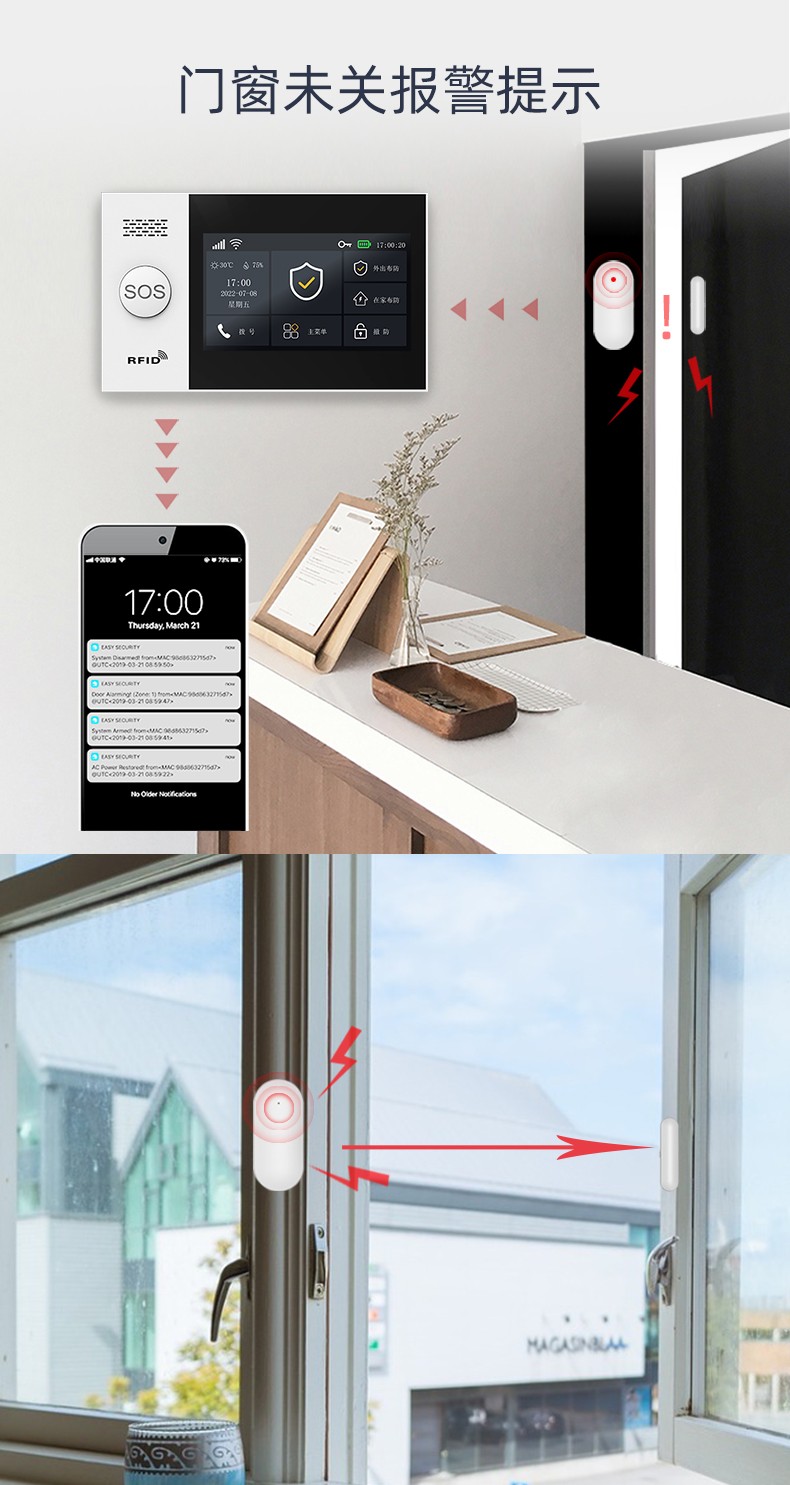 自帶防拆報警功能,布防門窗未關(guān)警示