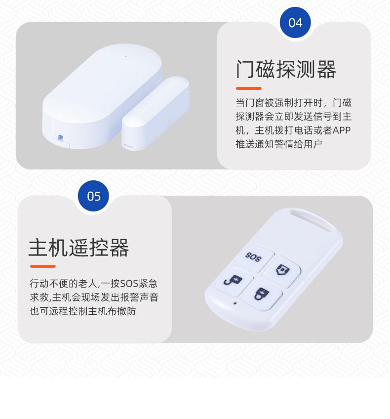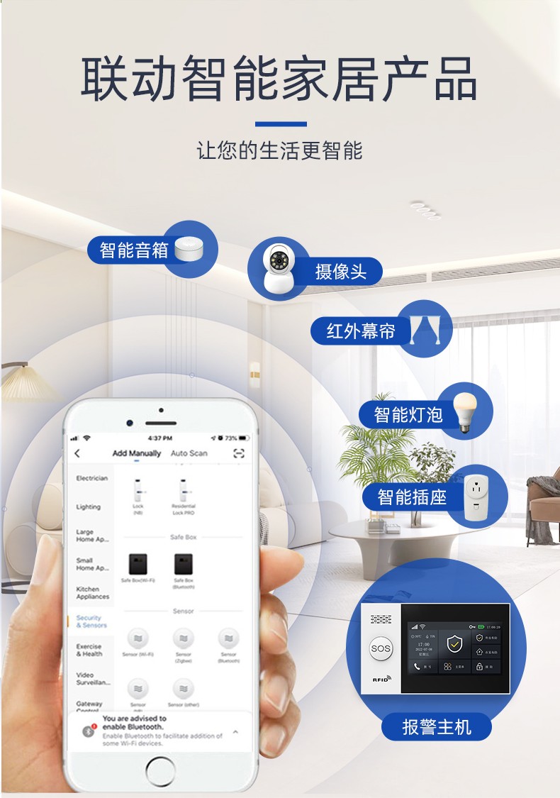 采用嵌入式操作系統(tǒng),ARM9 CPU高性能運行支持WIFI/GSM/4G/GPRS多種通信服務(wù)自帶語音提示功能,支持10個常用國家語言支持接入涂鴉云,Alexa智能語音控制,APP推送自帶高分貝警號,可選配太陽能戶外聲光警號內(nèi)置門鈴功能,緊急求助功能