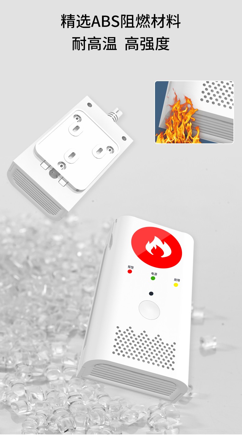 當(dāng)報(bào)警器周?chē)h(huán)境中可天然氣體濃度達(dá)到響應(yīng)濃度設(shè)定值時(shí),能發(fā)出聲、光及聯(lián)網(wǎng)報(bào)警信號(hào)。處于報(bào)警狀態(tài),周?chē)h(huán)境里的可天然氣體濃度下降到響應(yīng)濃度設(shè)定值以下時(shí),能自動(dòng)恢復(fù)到正常監(jiān)控狀態(tài)。該報(bào)警器有紅、黃、綠三個(gè)狀態(tài)指示燈和一只內(nèi)置蜂鳴器,分別表示下列三種狀態(tài):綠色指示燈常亮,報(bào)警器電源工作正常,處于監(jiān)控狀態(tài);黃色指示燈閃爍,伴有蜂鳴器響聲及聯(lián)網(wǎng)輸出,報(bào)警器有故障出現(xiàn)(主要是傳感器故障); 紅色指示燈閃爍,伴有蜂鳴器響聲及聯(lián)網(wǎng)輸出,表示產(chǎn)品處于報(bào)警狀態(tài)。
